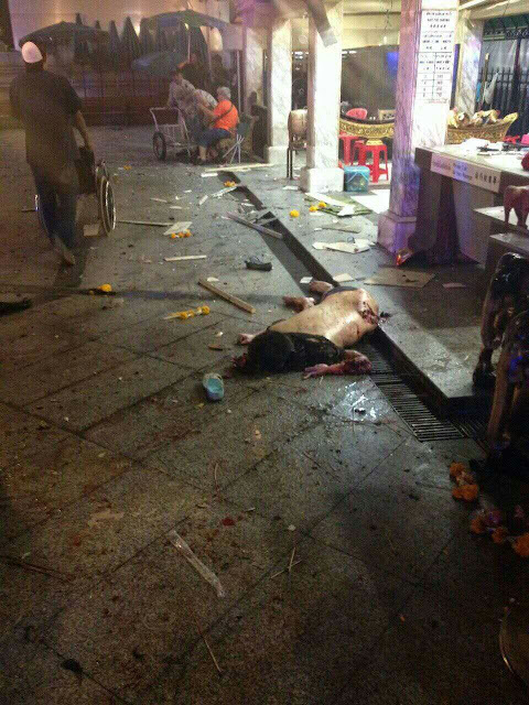 Beberapa cebisan tubuh mangsa turut dilihat bertaburan di lokasi kejadian yang berlaku di hadapan sebatang jalan di luar Kuil Erawan, dalam daerah Chidlom di tengah-tengah ibu kota Thailand itu.